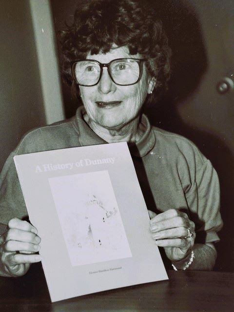 Quand Eleanor a pris sa retraite de l’enseignement au début des années 1980, elle a cherché un projet de retraite pour s’occuper. C’est alors qu’elle devenue la généalogiste de la famille. Bien avant Internet et Ancestry, Eleanor a passé des heures à consulter des documents dans des bibliothèques et des églises au Canada, aux États-Unis et au Royaume-Uni. C’est ce travail généalogique ainsi que le rôle de Dayton en tant que gardien du cimetière St Paul qui ont amené Eleanor à s’intéresser pour la première fois à l’histoire de la communauté de Dunany. En 1986, elle commence à travailler sur un livre. Cinq ans plus tard, A History of Dunany fut publiée.