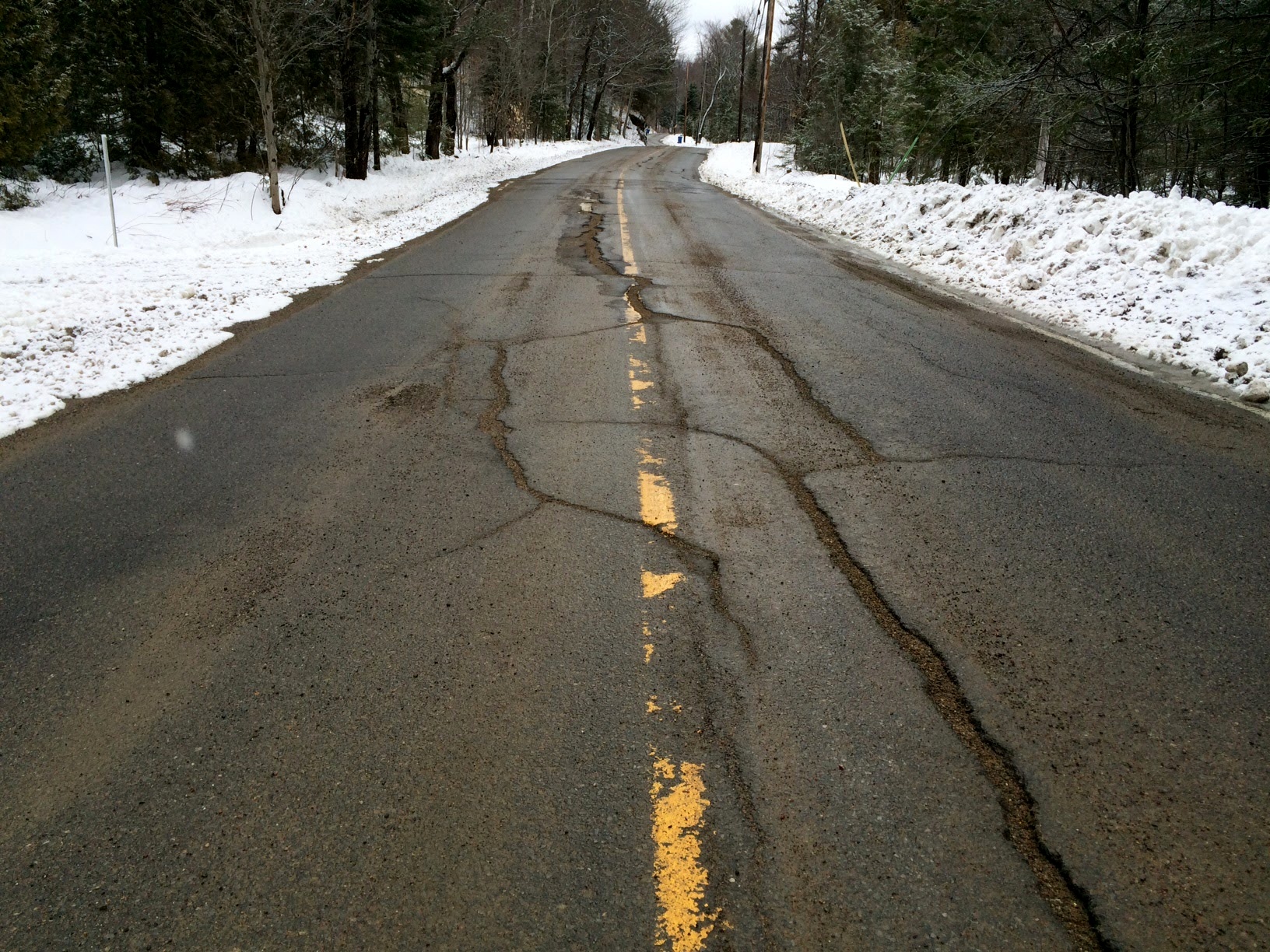 Mais pour les autres, ceux qui restent en ville ou qui se font griller au soleil quelque part dans le sud, voici la situation. Une route déneigée tardivement, des surfaces glacées à peine ensablées et, pire, des blocs et des ornières de glace un peu partout sur la route. C’est vrai que la météo a été particulièrement maussade. Surtout en mars. Pluie, neige, gel et dégel…