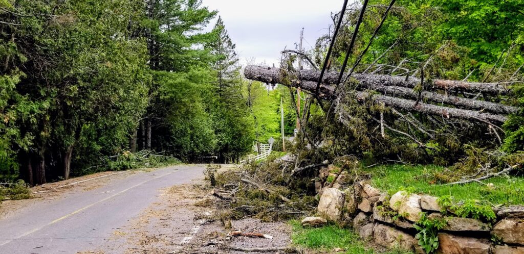 4. Le derecho du 22 mai 2022 a probablement été l’événement météorologique le plus violent de l’histoire de Dunany. De grands arbres ont été déracinés, et l’un d’eux est tombé sur un chalet où les occupants ont eu la peur de leur vie.