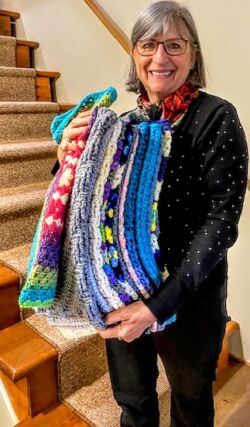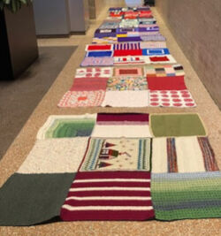 Chaque semaine, quelques tricoteurs se sont rendues au Centre récréatif de Wentworth pour aider à coudre les carrés ensemble. Certaines d’entre elles se sont même rendues à Montréal au Centre récréatif de Westmount pour y coudre des couvertures.