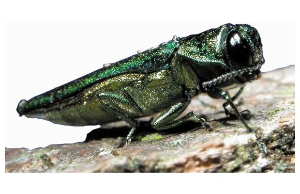 The Emerald ash Borer (Agrilius planipennis) is an insect that attacks and kills all species of ash, except mountain ash which is not a true ash. This is what it looks like: