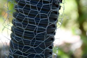 Le grillage à poules peut aussi être utilisé. Toutefois, il est moins rigide et devra être ajusté pour tenir compte de la croissance de l’arbre. Mais c’est aussi une solution moins dispendieuse.