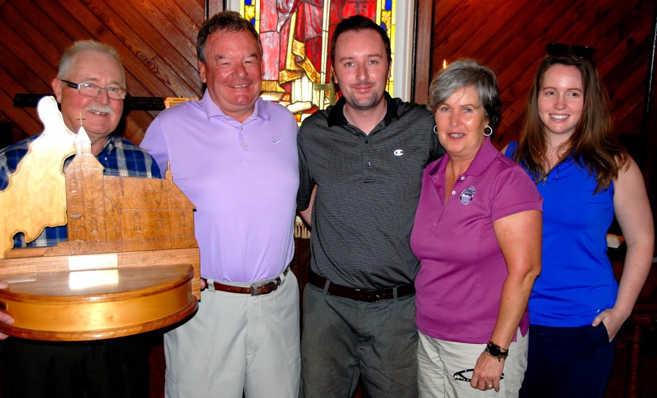 À la fin de la cérémonie, John Cleary qui présidait l’évènement cette année a remis le trophée 2014 à la famille Lavoie. Sur la photo qui suit, on le voit avec David, Sue, Anthony et Suzanne Lavoie.