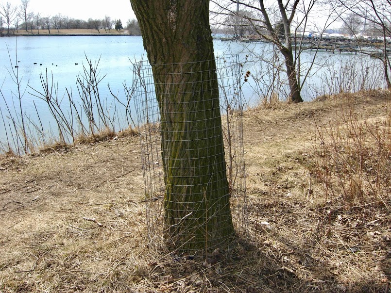 Je profite de l’occasion pour vous laisser un petit conseil. Si vous avez des arbres auxquels vous tenez sur votre bande riveraine, protégez-les! Ce n’est pas très malin comme vous le montre cette photo. Un treillis de 2×2 pouces d’environ quatre pieds de haut fera l’affaire. Et laissez de l’espace à l’arbre pour grandir.