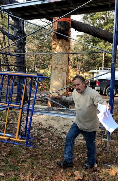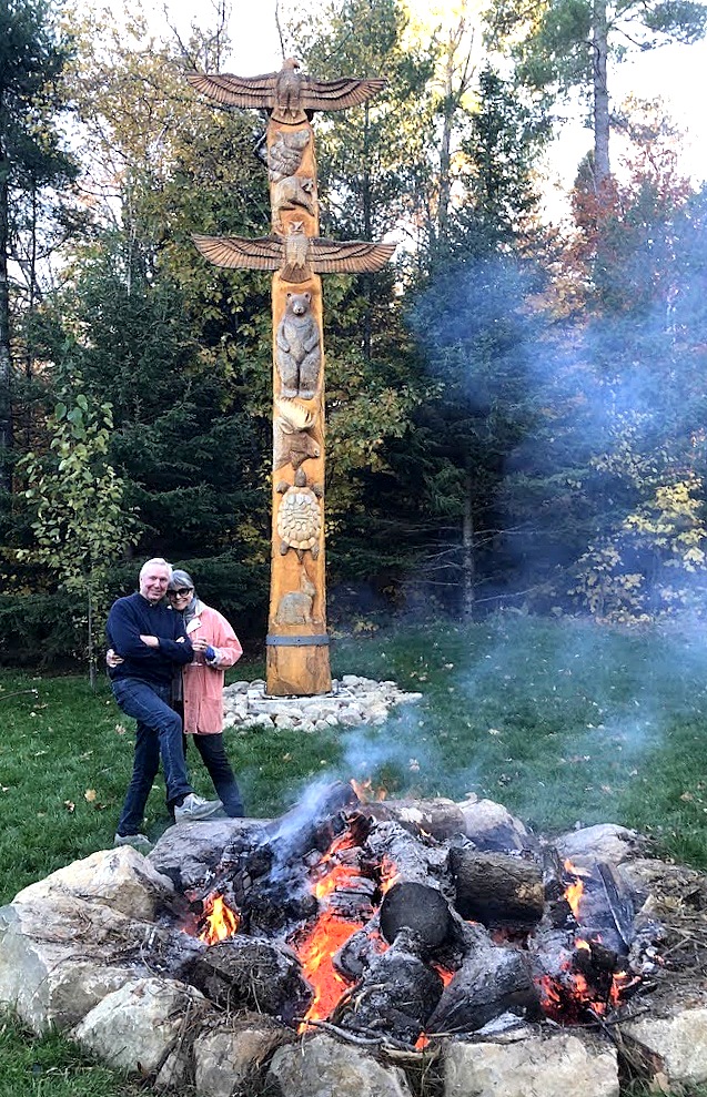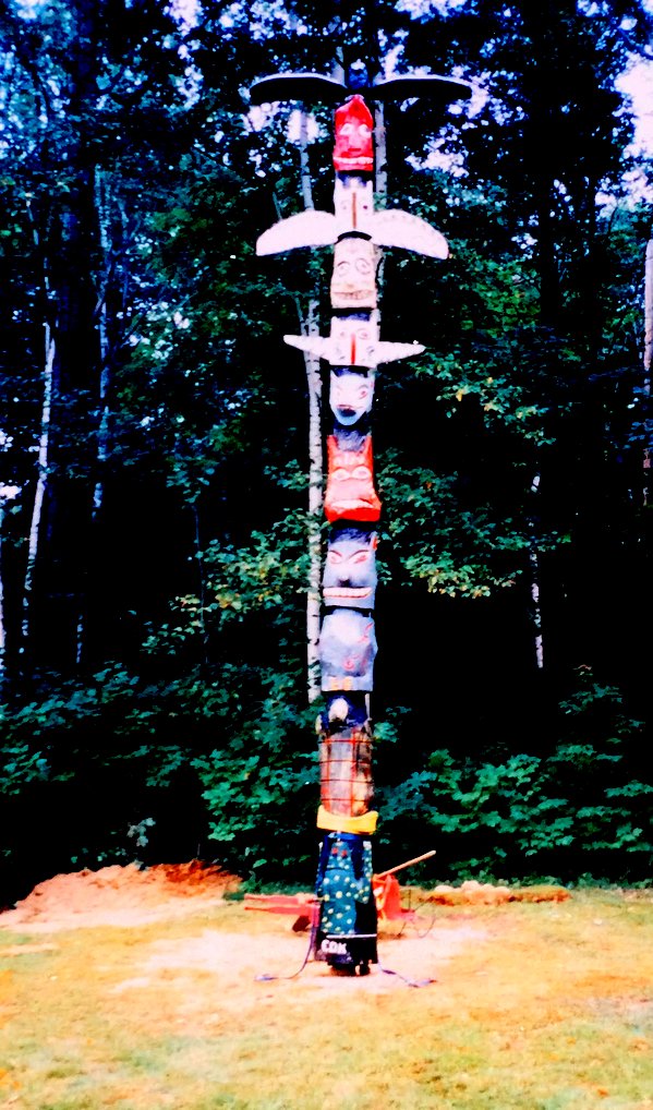 Cette histoire débute en août 1994 lorsque la famille Tilden décide d’ériger un mât totémique sur sa propriété située sur le versant sud du lac Clair. Il y était encore lorsque les Hindle ont acquis la propriété mais la pourriture l’avait tellement affaibli qu’il s’est écroulé peu après. La tradition veut que ses restes soient brulés tout prés de l’endroit où il a été érigé. C’est, dit-on, pour apaiser les esprits. Ce qui fut fait.