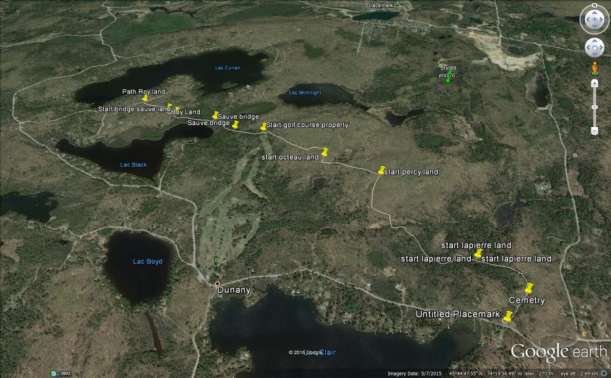 - Robert Percy a présenté le projet d’une piste pour marcheurs et cyclistes reliant le lac Curran à l’église St-Paul que la salle a accueilli avec enthousiasme. Le projet est encore à l’étape du développement. Des consultations se poursuivent avec les propriétaires terriens en vue de réaliser une première phase l’an prochain. Cette carte de Google Earth vous en indique le tracé proposé. Cliquez sur la photo pour l’agrandir.